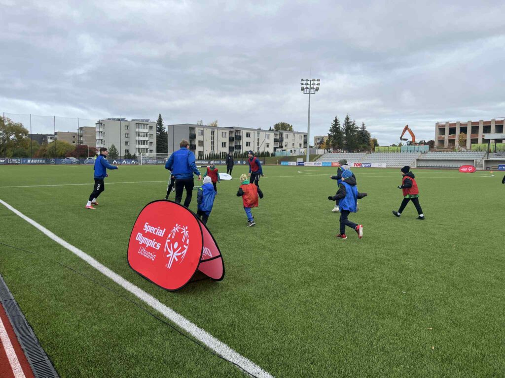 2025-10-15 Raudondvario sporto aikštyne tvyrojo ypatinga nuotaika – čia vyko įsimintina LSOK ir FC „Hegelmann“ organizuota integruota sporto šventė, į kurią atvyko profesionalūs futbolininkai iš FC „Hegelmann“ klubo ir mažieji atletai iš įvairių Lietuvos ugdymo įstaigų.