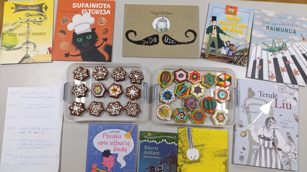 Gruodžio mėnesį bibliotekininkė, mokytoja Sonata Česnulevičienė kvietė mokinius pasinerti į saldžiausią metų akciją – projektą „Iškeisk perskaitytą knygą į dekoruotą sausainį“. Šio renginio tikslas buvo priminti visiems, kad skaitymas gali būti ir naudingas, ir labai saldus užsiėmimas, nes mokiniai prisidėjo ir prie sausainių kepimo! Beliko bibliotekininkei juos gražiai dekoruoti….Projekto metu II aukšto mokiniai su auklėtoju Edgaru Jevaičiu popietinės veiklos metu perskaitė net 12 knygų! Vienas mokinys beveik įveikė storą „Hario Poterio“ knygą. Šaunuolis! III aukšto mokiniai su auklėtoja Audrone K. į skaitymą pažvelgė kiek kitaip, bet pagal savo sugebėjimus, todėl jie ne tik skaitė, bet atidžiai klausėsi skaitomų istorijų, vaidino pasakų ištraukas, kūrė savo istorijas, dėliojo spalvingas pasakų personažų dėliones.