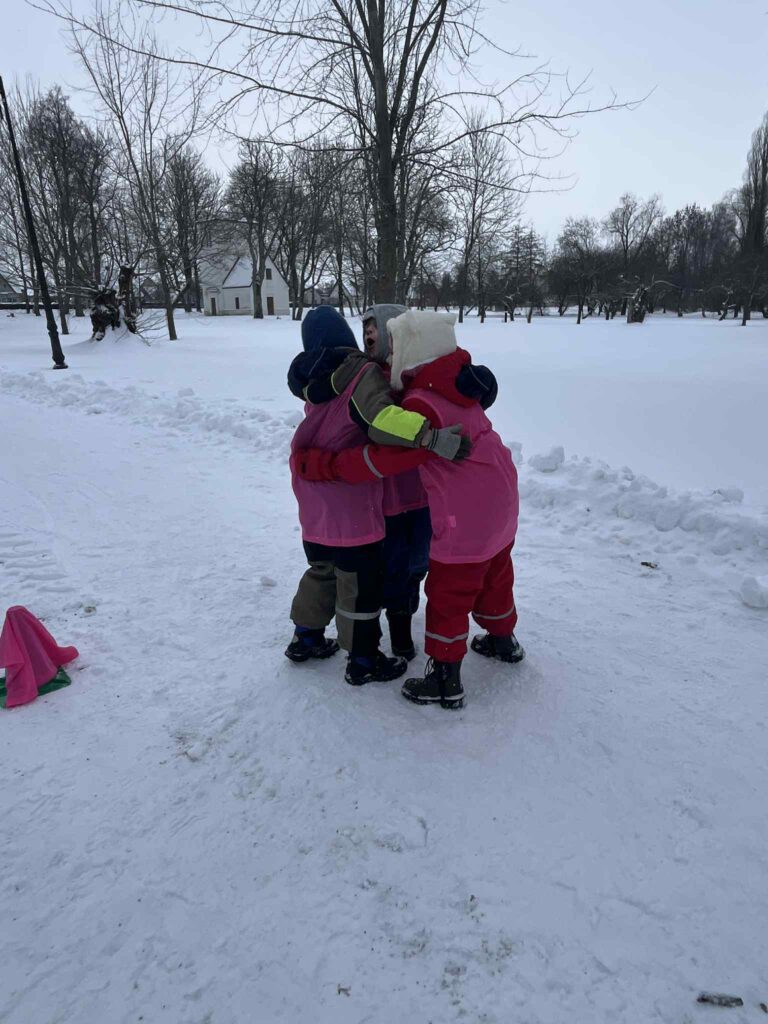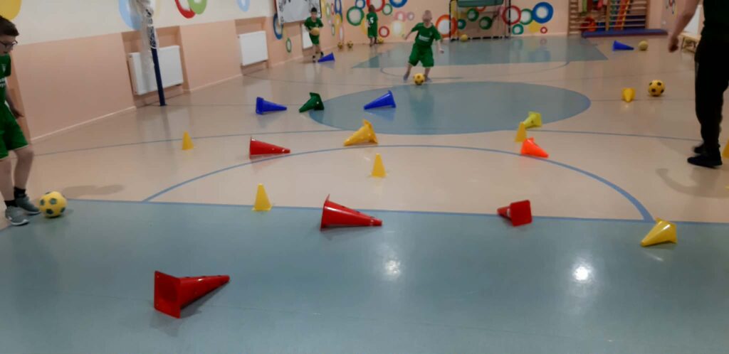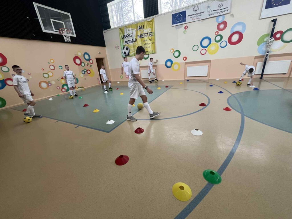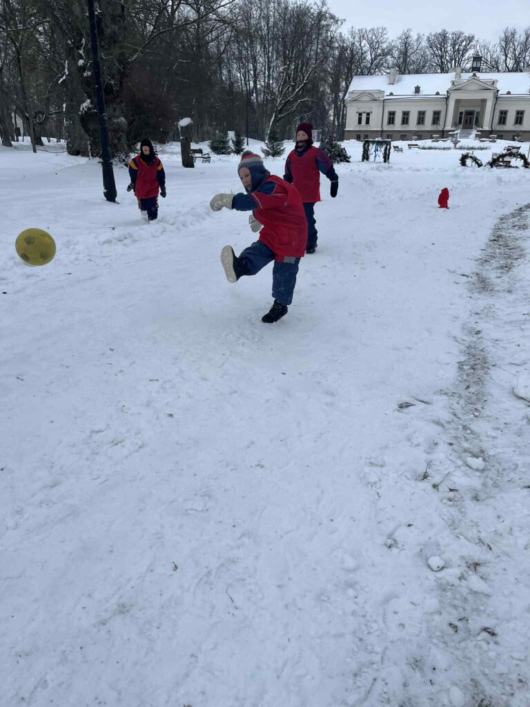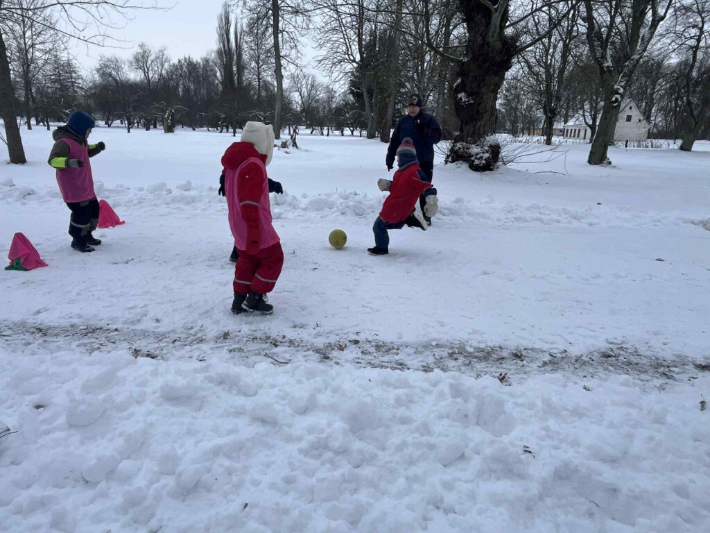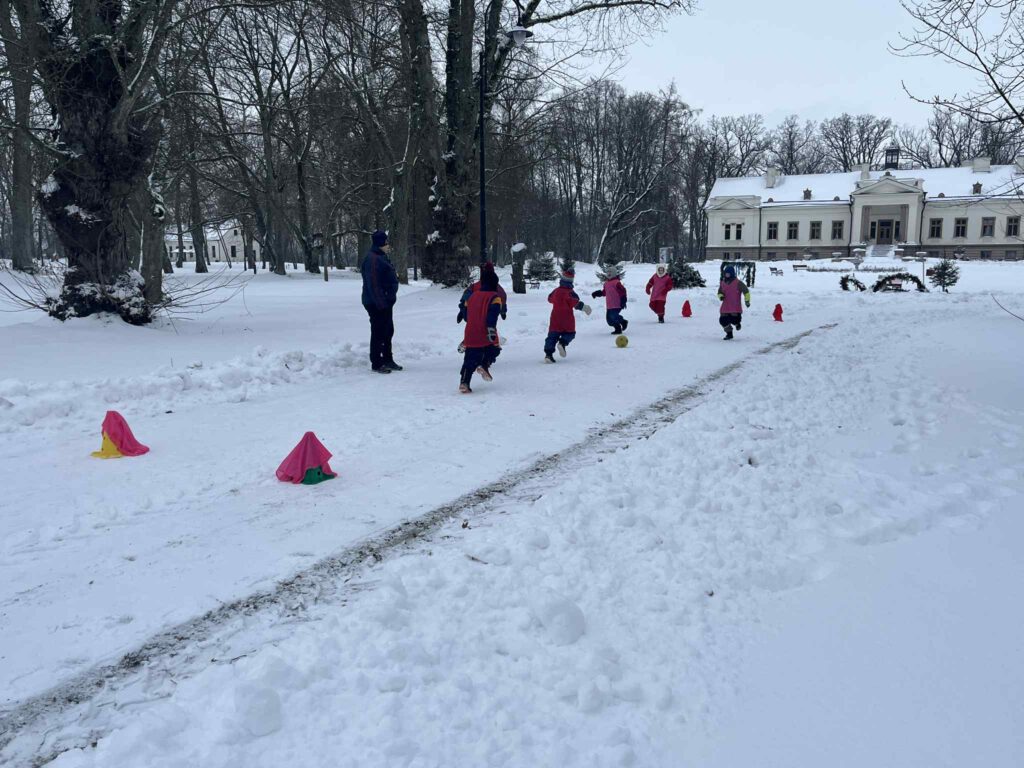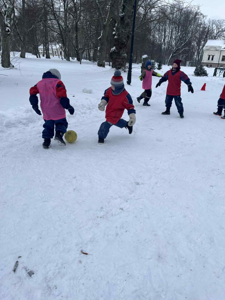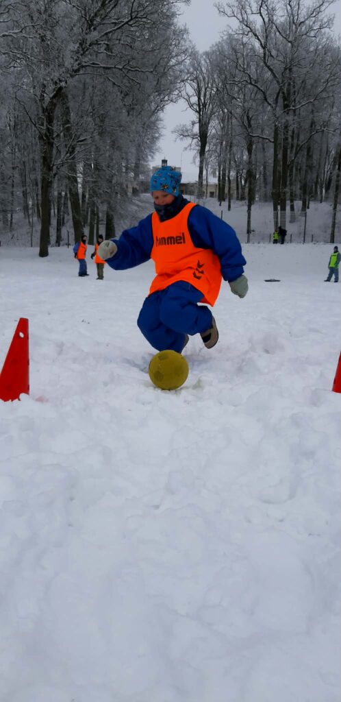 Salėje atlikome įvairius pratimus, padedančius gerinti futbolo kamuolio valdymo ir komandinio žaidimo įgūdžius. Futbolą žaidėme ir lauke, nes kartu džiaugėmės ir žiemos malonumais.