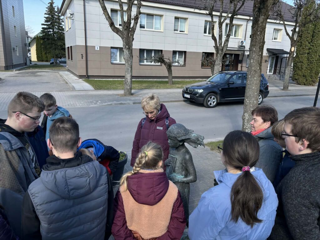 Balandžio 13 dieną karjeros specialistas Andrius Matusevičius ir socialinė pedagogė Rūta Jurkšaitienė išvyko kartu su mokiniais į pažintinę ekskursiją „ Pažink Šakius“. Puiki gidė Birutė Bendoraitienė papasakojo Šakių miesto atsiradimo istoriją, daug įdomių istorinių faktų. Vaikščiojome po Šakių miesto skverą, trynėme žyduko lagamino kampą norėdami pritraukti pinigus. Aplankėme Vinco Kudirkos klėtelės vietoje pastatytą  paminklą, Zanavykų mergaitę, ieškojome interaktyvių pėdučių ir mūsų raidyno. Kartais vaikštai kiekvieną dieną pažįstamais takais, bet kai gidė papasakoja linksmą istoriją, kitomis akimis pažvelgi į tai kas tave supa. Dėkingi esame gidei Birutei už naujai atrastus Šakius.